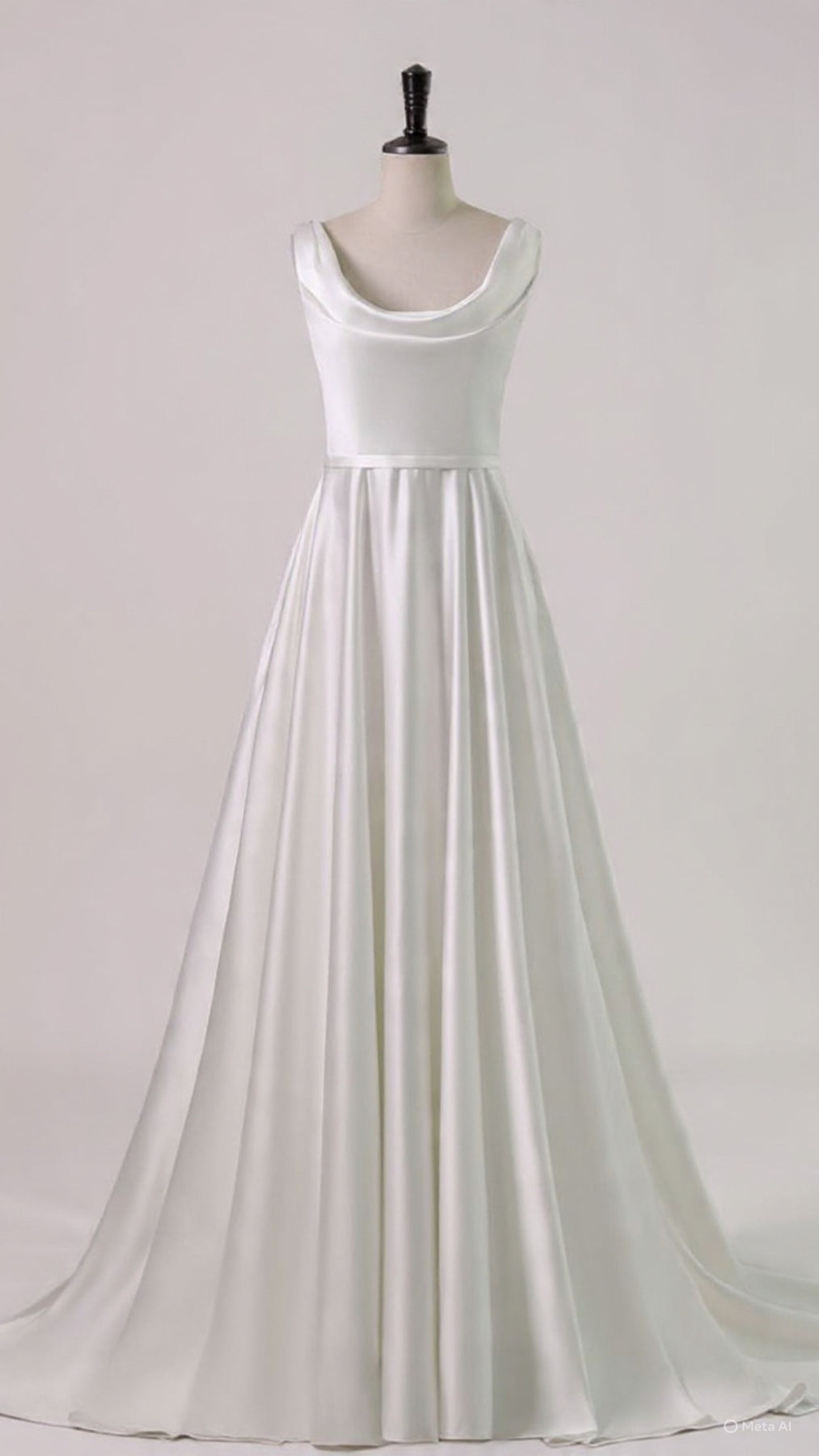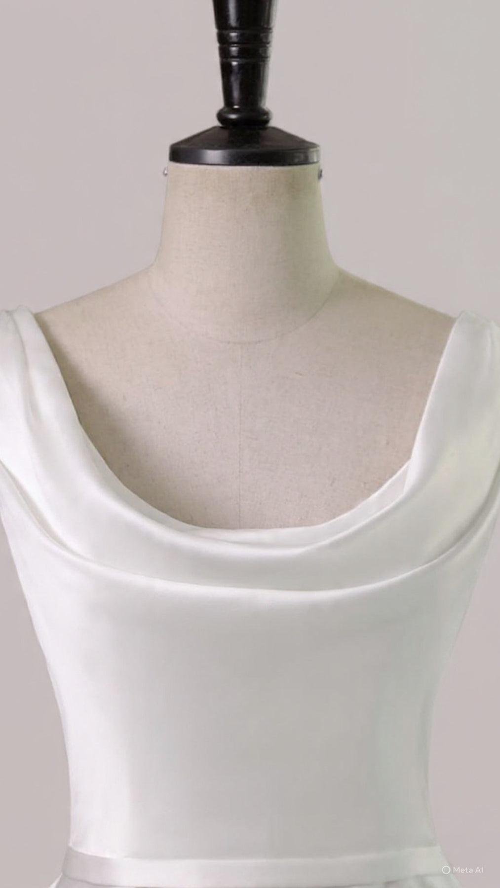 Meet "Farah"- This gown is the definition of clean, timeless elegance with a touch of soft romance. It features a beautifully draped cowl neckline that adds fluidity and femininity while gently framing the collarbone and shoulders. The bodice is smooth and minimal, offering a flattering, modern silhouette without any embellishment.