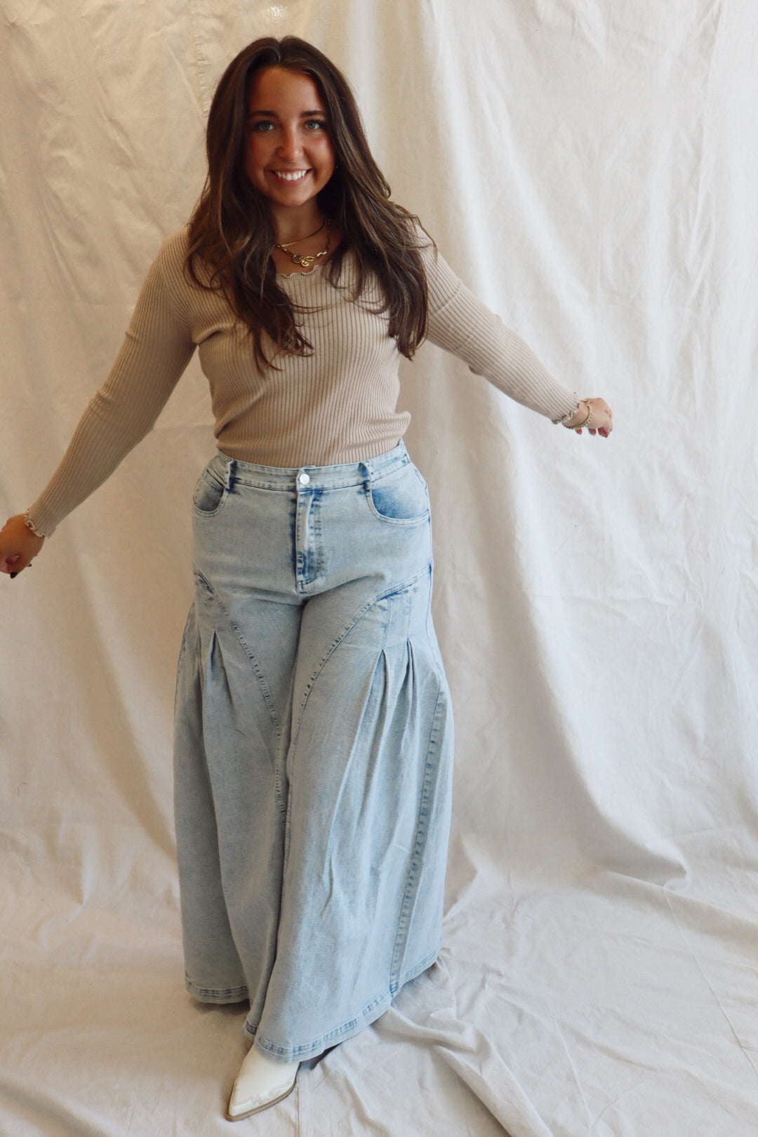 Chic and cozy, this slim-fit Adalie Knit sweater is the epitome of style. With a flattering hip-length cut, a trendy scoop neck, and charming ruffle detailing at the hems, it effortlessly combines elegance and comfort. The long sleeves add warmth, making her a versatile wardrobe essential.