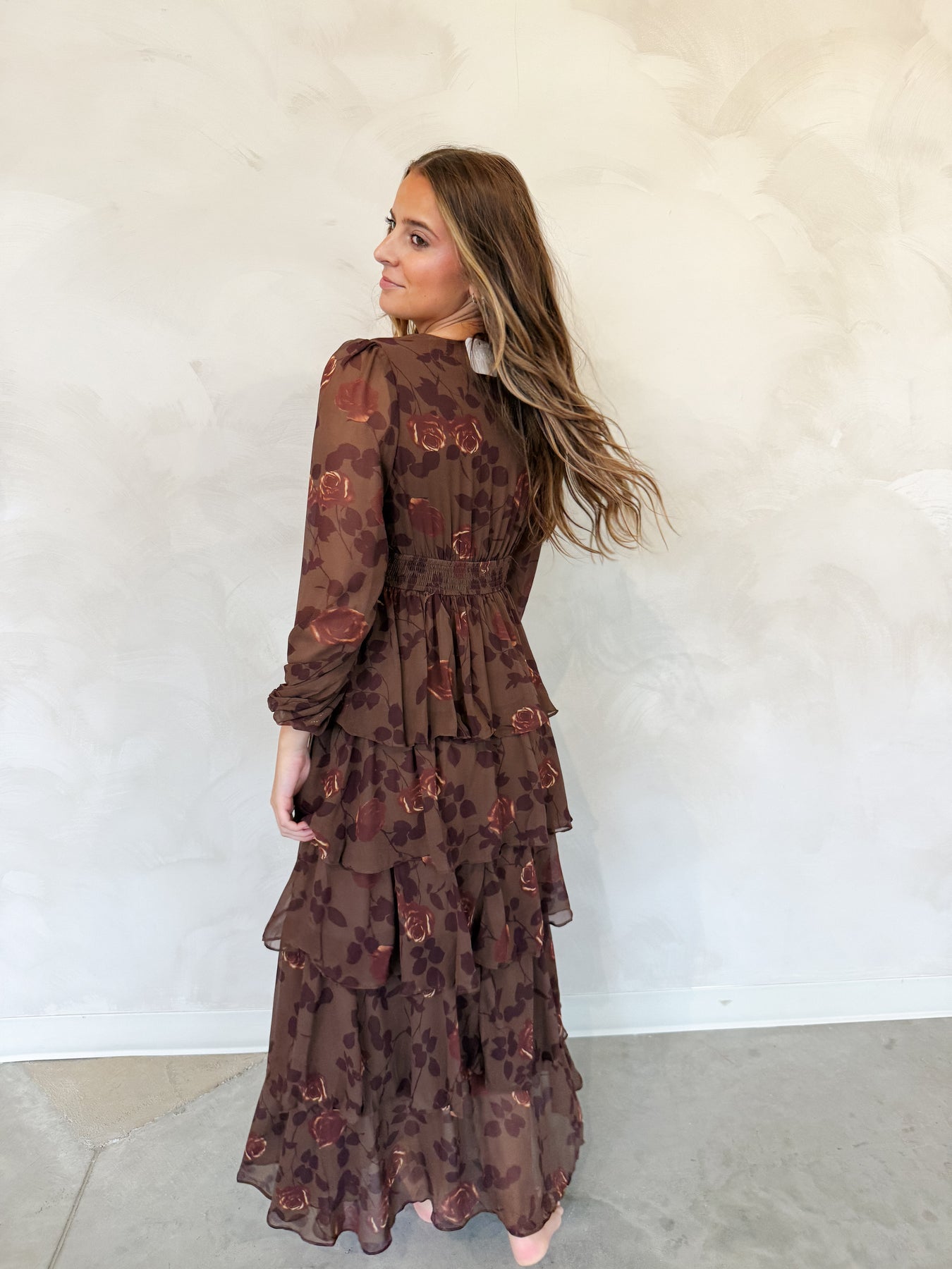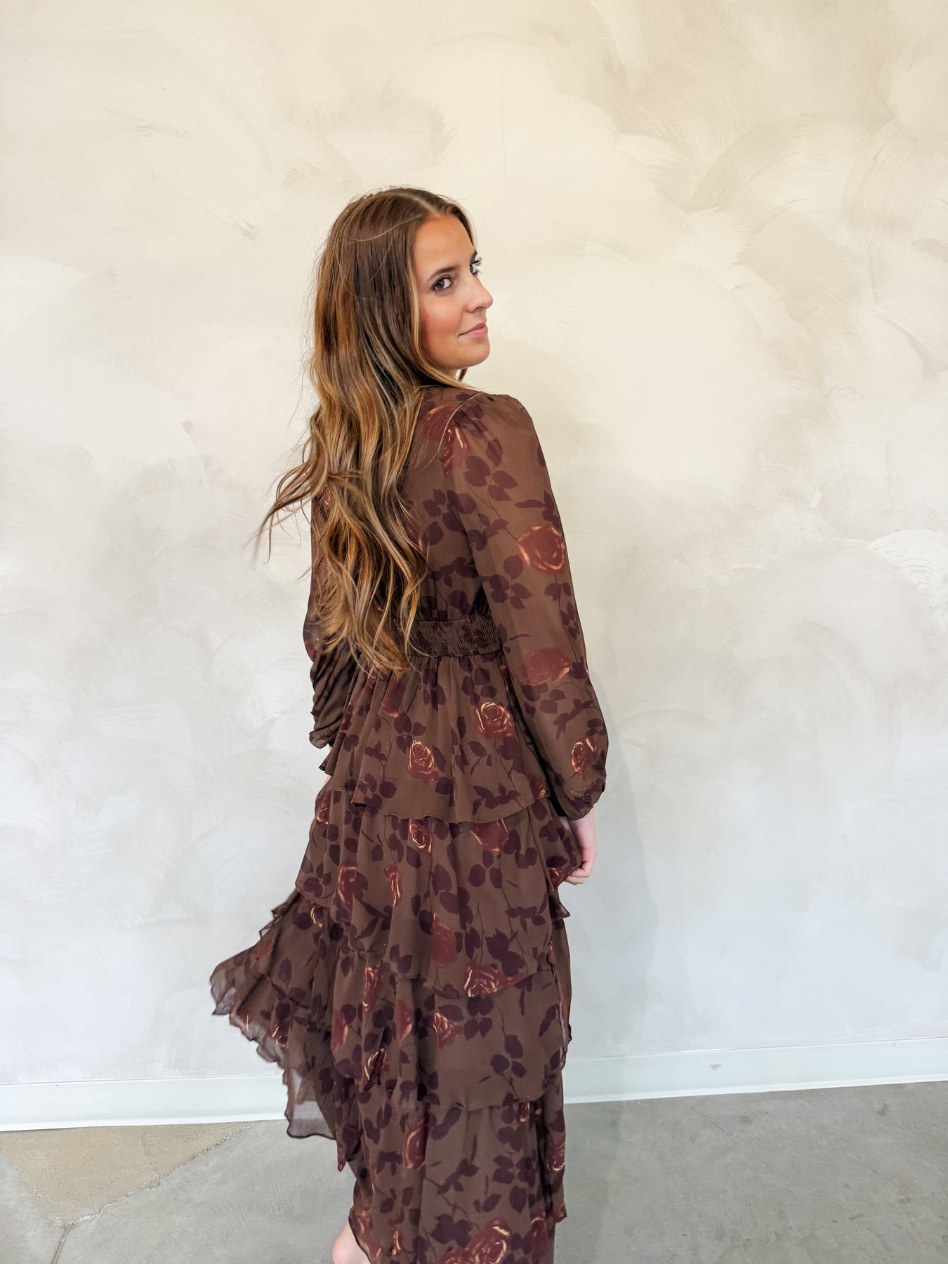 Floaty and feminine, this romantic amber maxi dress is designed in a lightweight chiffon floral print that moves beautifully with every step. The tiered skirt cascades in five panels for effortless flow, while the V-neckline adds a touch of allure. A smocked back bodice ensures the perfect fit, and the fully lined design keeps it comfortable from day to night. Perfect for weddings, parties, or any occasion where you want to feel effortlessly elegant.