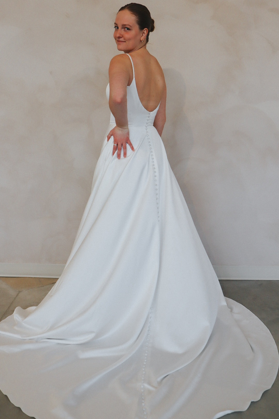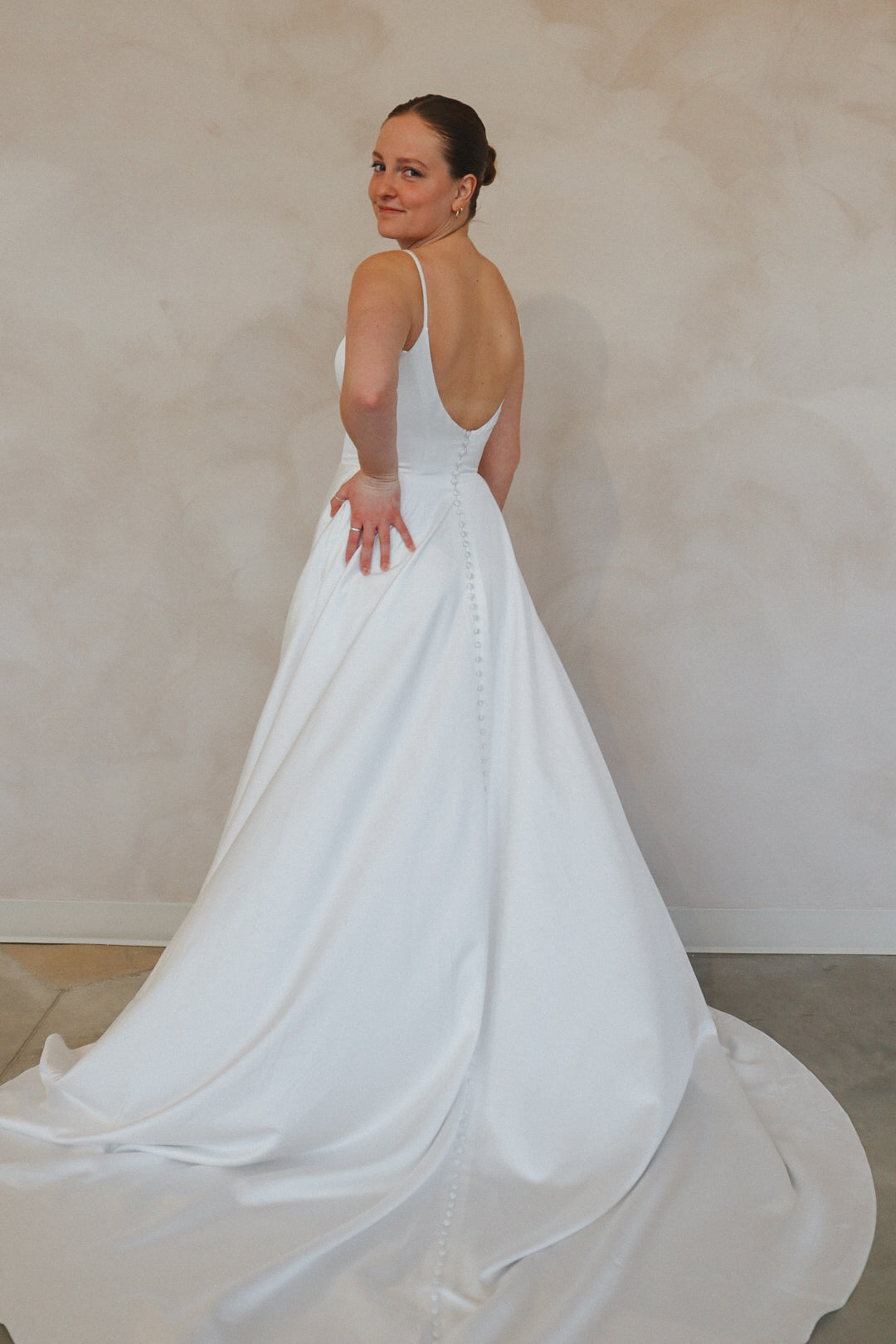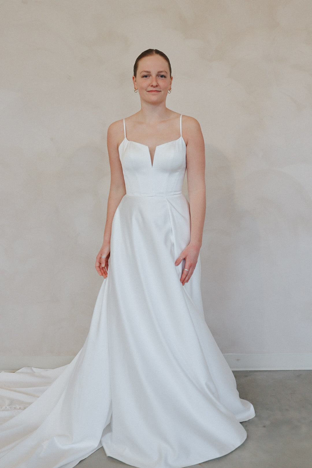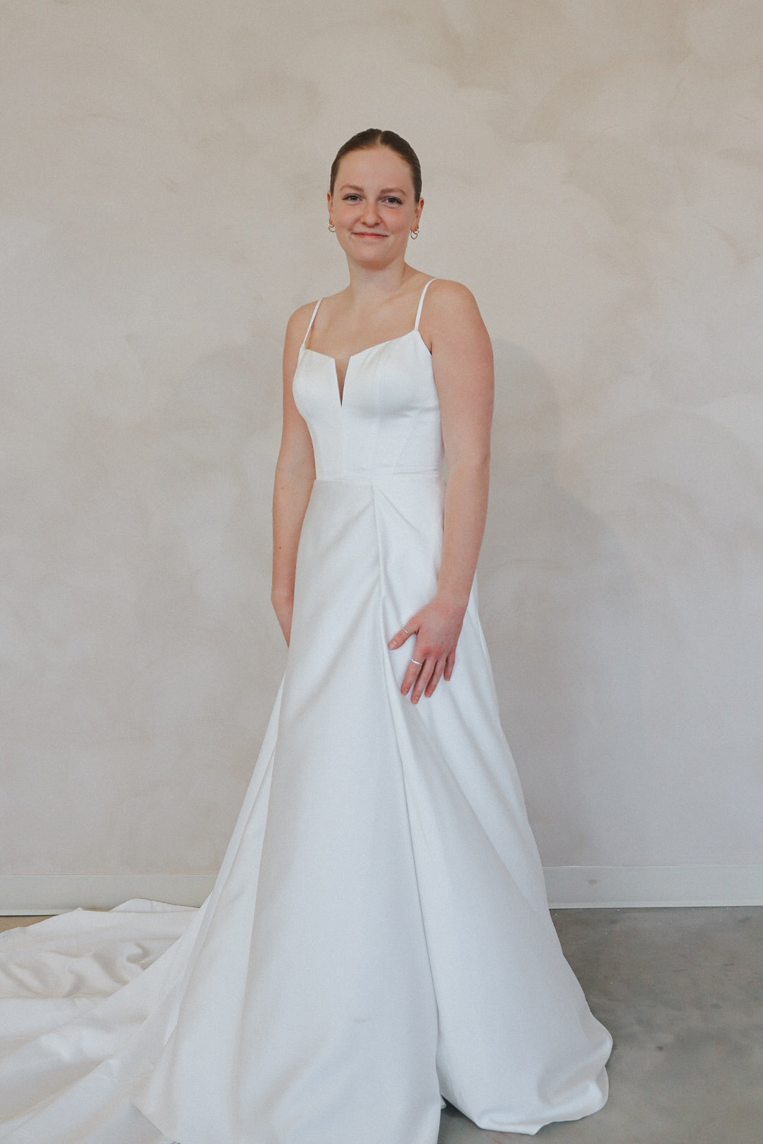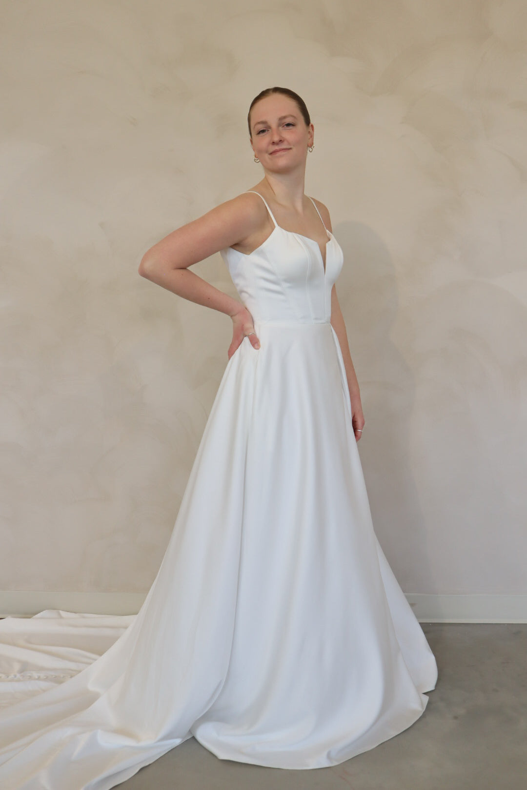 Introducing "Archer"- For the bride who's all about effortless chic, this gown is a total vibe. With sleek spaghetti straps and a flattering sweetheart neckline, it's got that perfect mix of elegance and edge. The standout thigh-high slit adds a daring touch, while the flowy A-line skirt keeps it soft and dreamy. Whether you're going for a modern vibe or something with a little extra flair, this dress is the one that’ll have all eyes on you. Classic white, but with a twist—because who says bridal can’t be bold?
