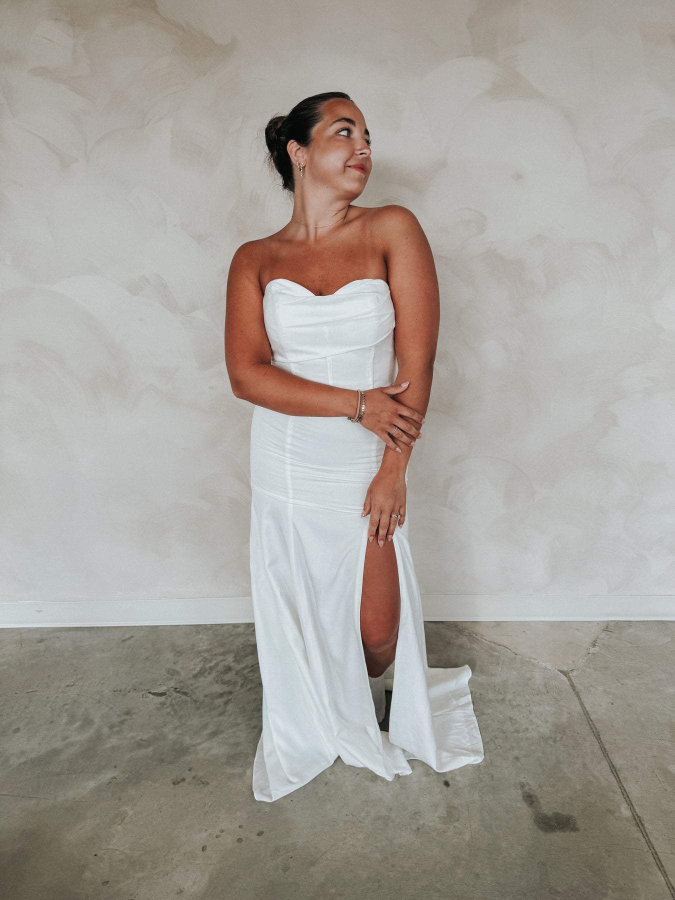 Introducing Deirdre- a lightweight, strapless wedding dress, perfect for your second look or more casual wedding.